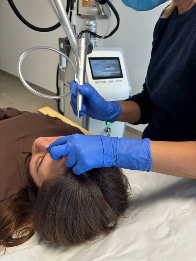 Le laser CO₂ agit comme un véritable pinceau de lumière : il vaporise les couches superficielles de la peau avec une précision micrométrique, tout en préservant les tissus environnants.