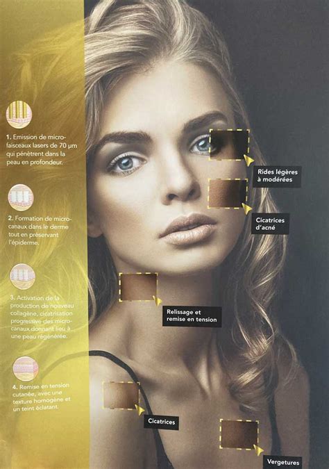 Indications esthétiques : Blépharoplastie, rides et ridules du visage, du cou et du décolleté, réjuvénation de la peau, traitement des vergetures.